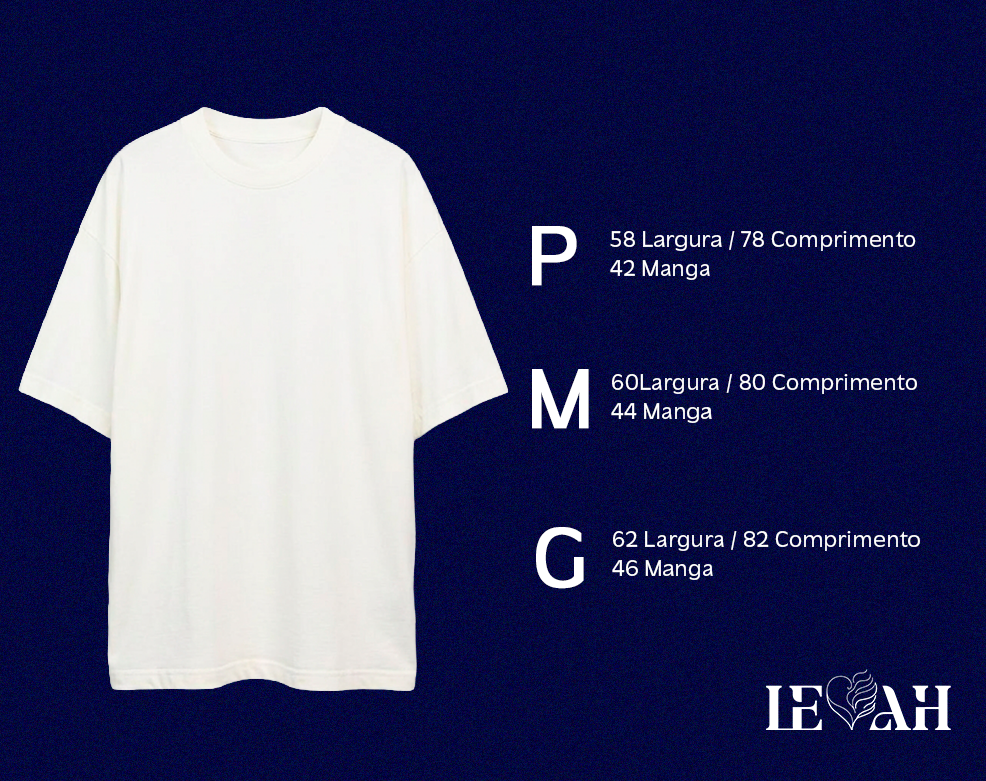 A Camiseta Oversized da Levah possui modelagem over, proporcionando um caimento solto e contemporâneo. Confeccionada em 100% algodão, garante conforto, qualidade e estilo para o dia a dia.